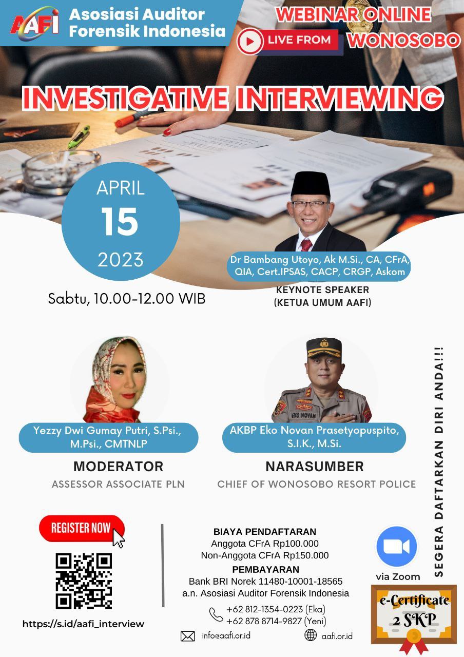 Asosiasi Forensik Auditor Indonesia (AAFI ABUA) mengundang Bapak/Ibu dalam Webinar Online dengan Tema INVESTIGATIVE INTERVIEWING